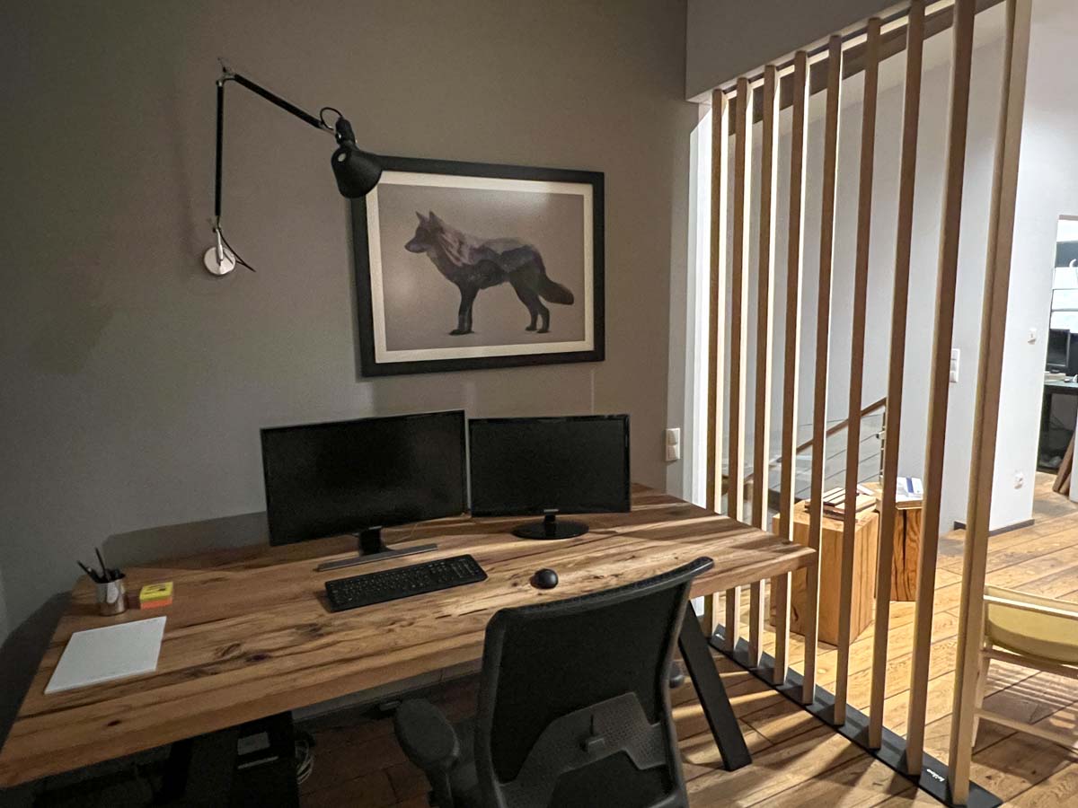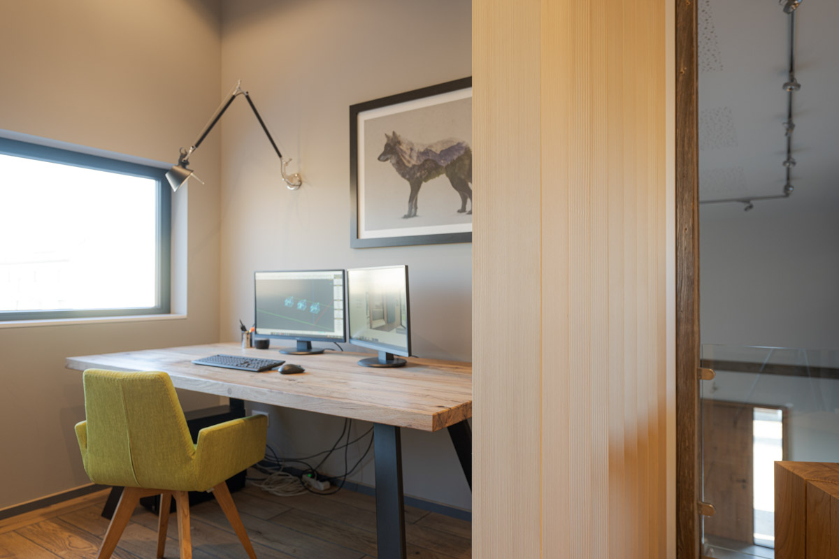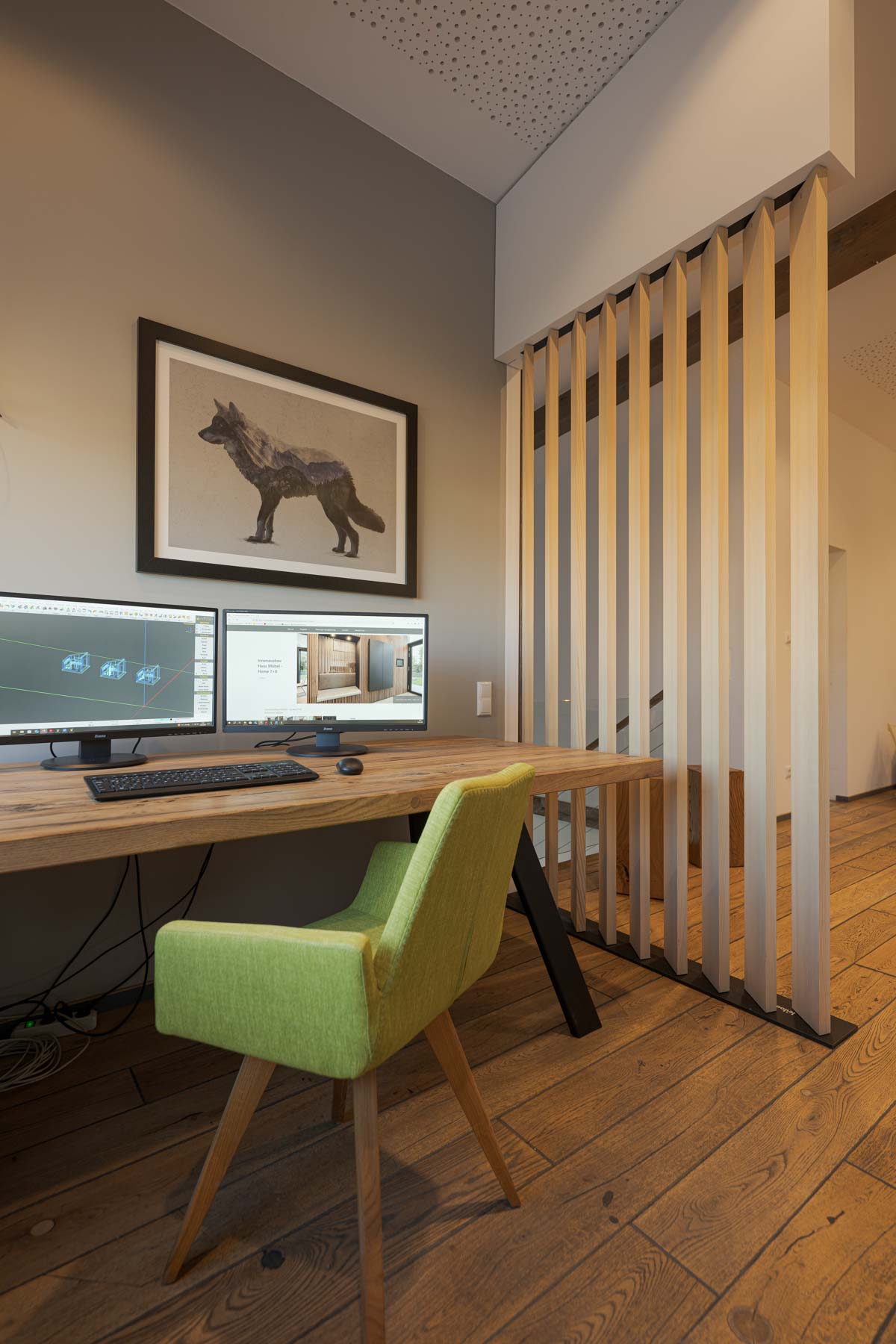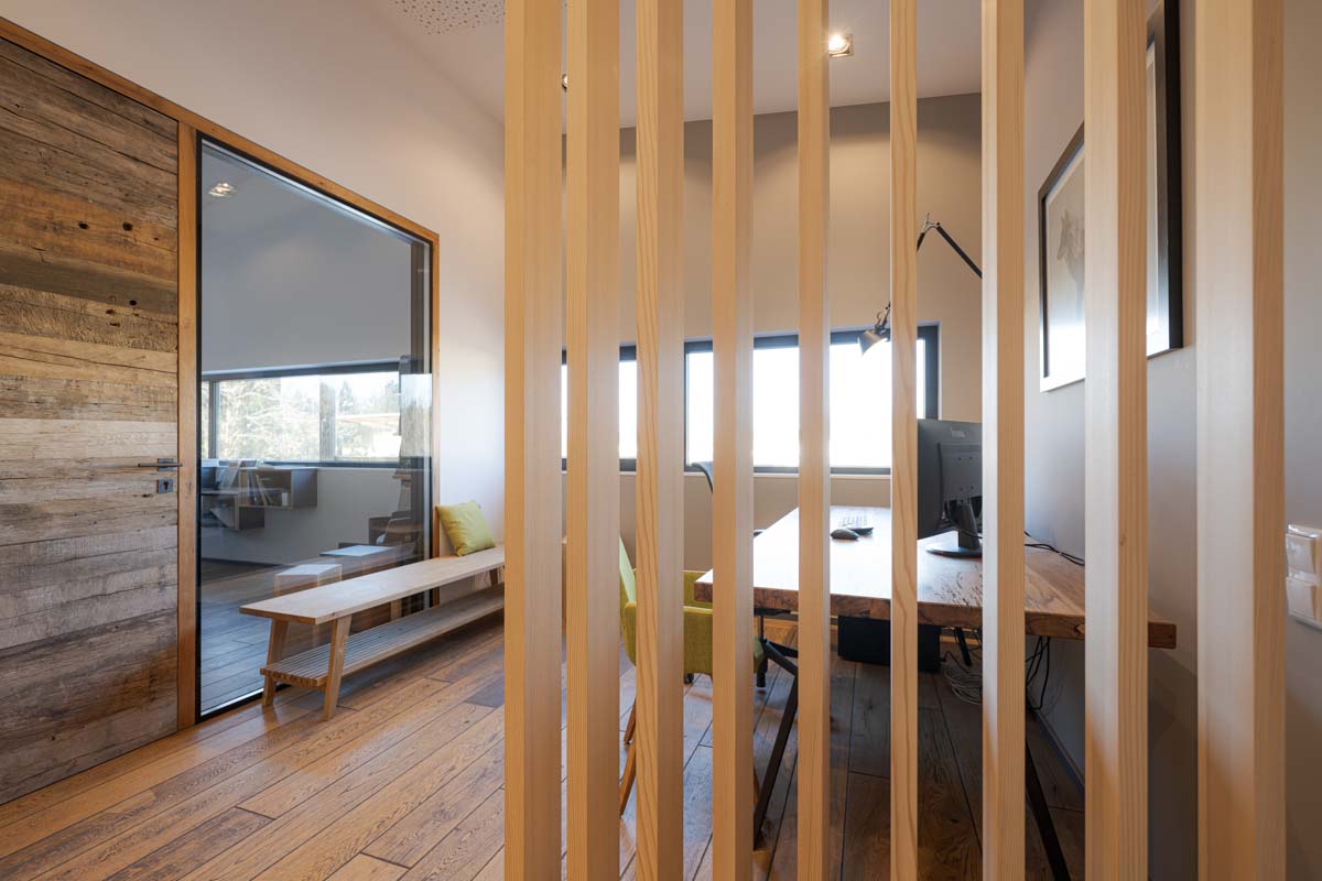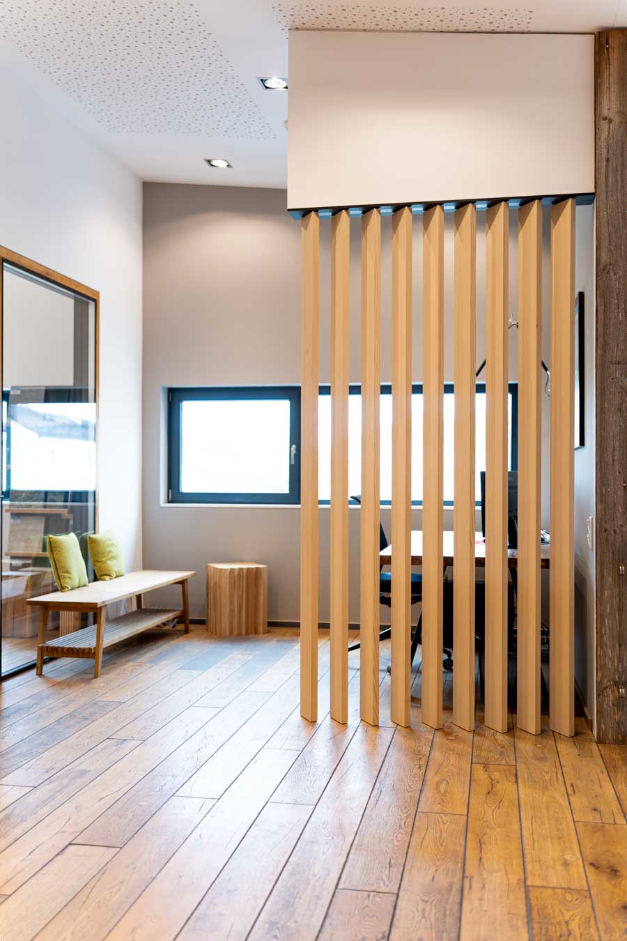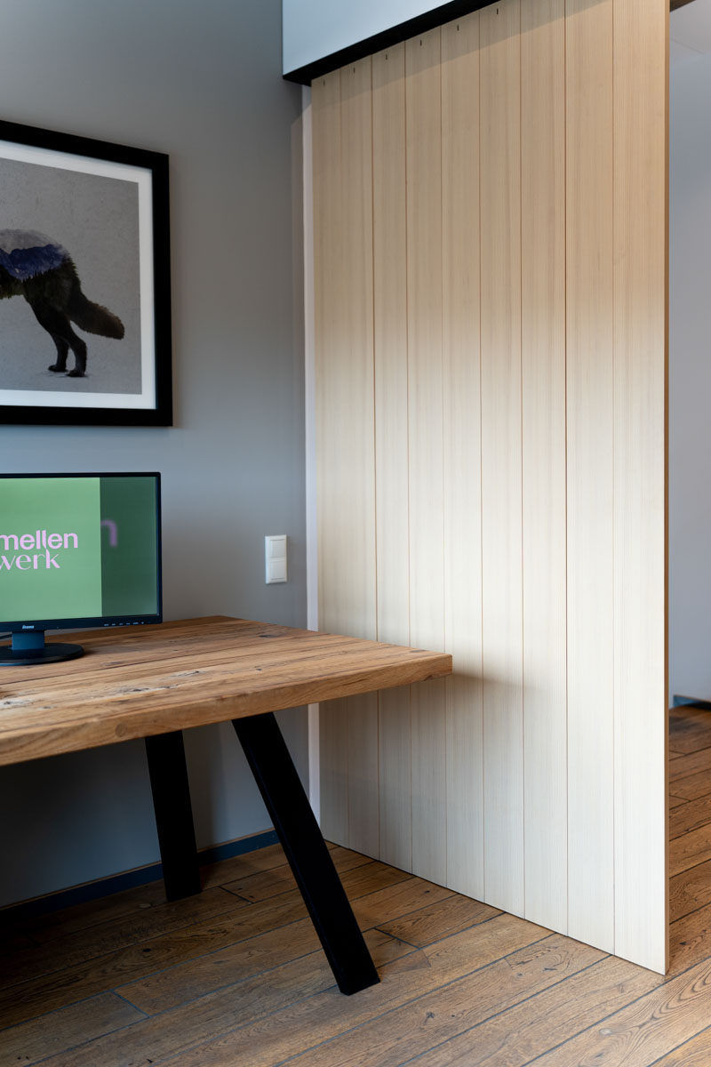 Eine leichte und flexible Lösung, mit einer drehbaren Lamellenwand aus einer offenen Raumsituation schnell einen geschlossenen temporären Arbeitsplatz zu schaffen. Ideal für konzentriertes Arbeiten in Wohn- oder Bürobereichen.