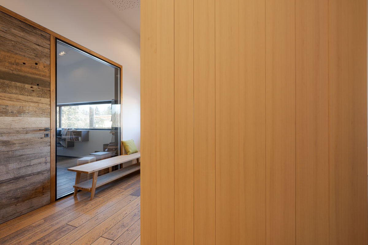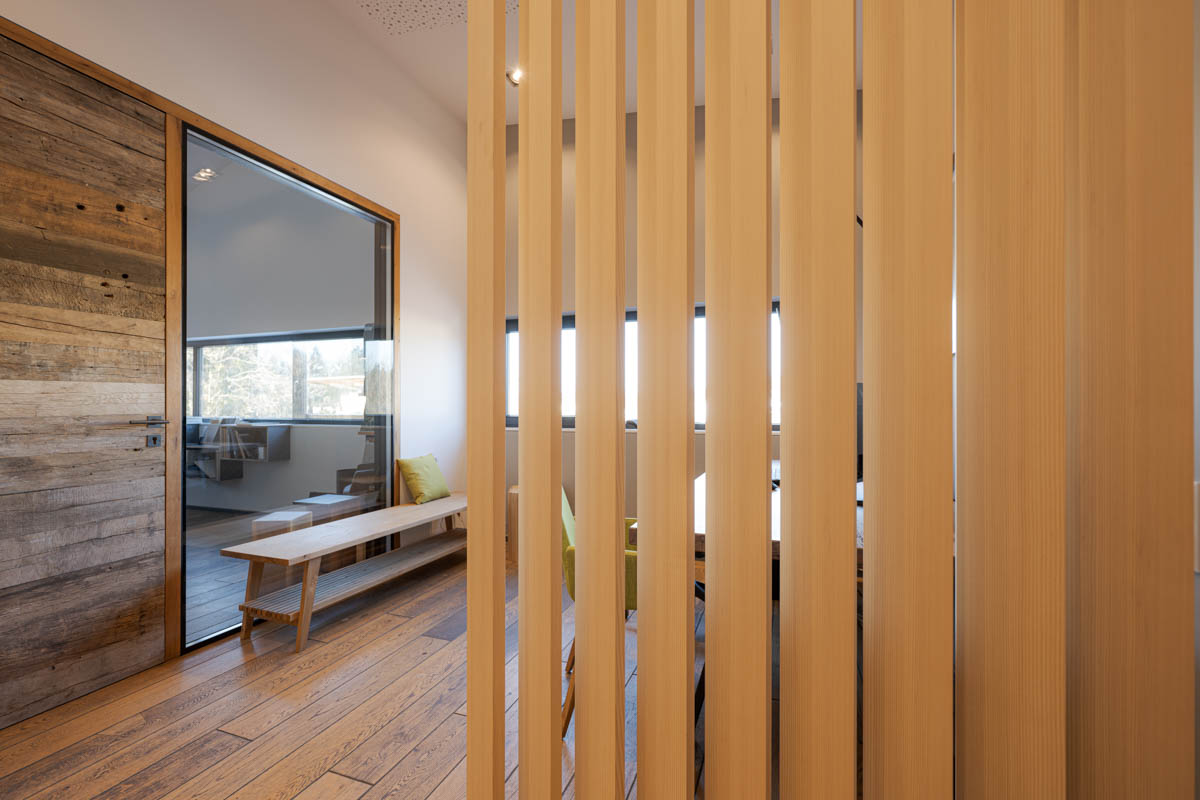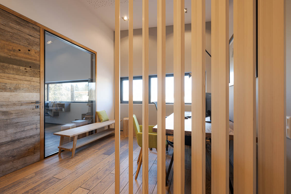 Lamellenwand temporärer Arbeitsplatz, Weißtanne